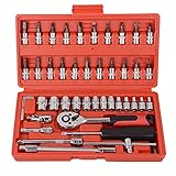 ソケットレンチセット 差込角6.3mm(1/4インチ)ラチェットレンチ 46pcs ソケットドライバー組み合わせ ツール