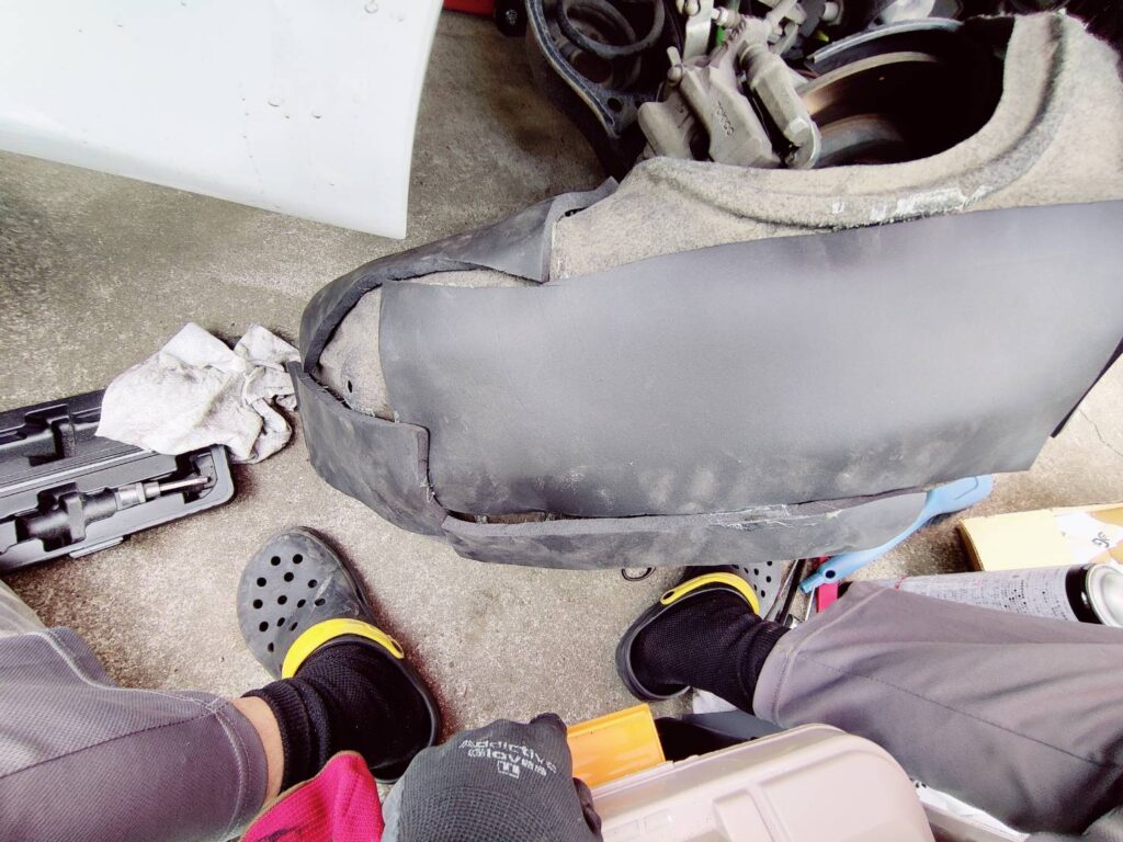フロントと異なりリアは鉄板とタイヤハウスカバーの間があまりありませんでした。