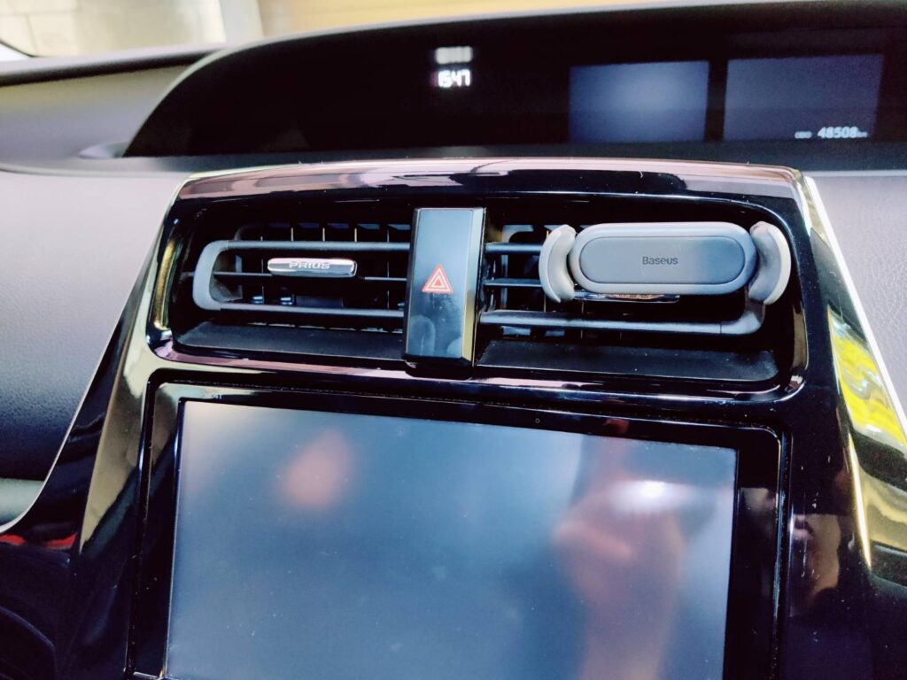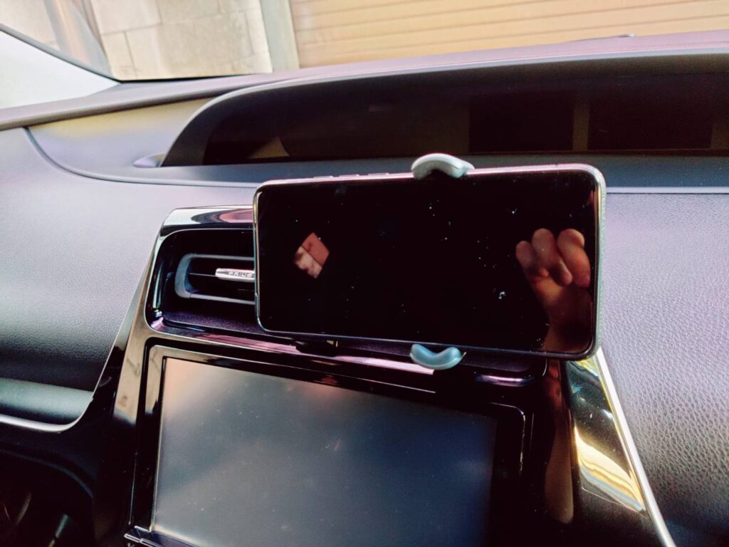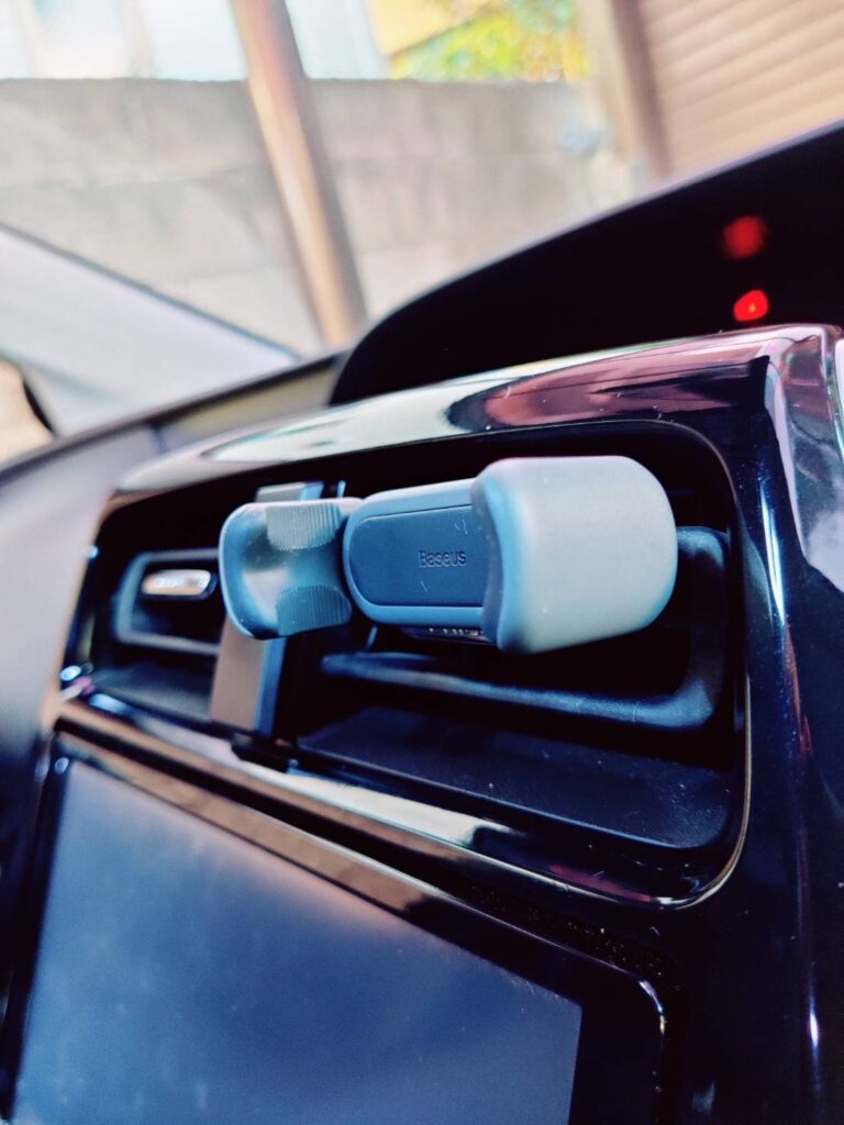 このスマホホルダーはエアコンバーの箇所もスマホもどちらもしっかり固定してくれます!