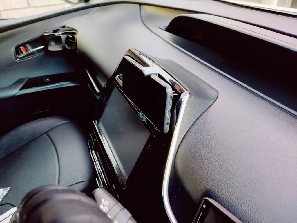 下のバーにつけるとナビ画面にスマホが当たったりするので上にしました!