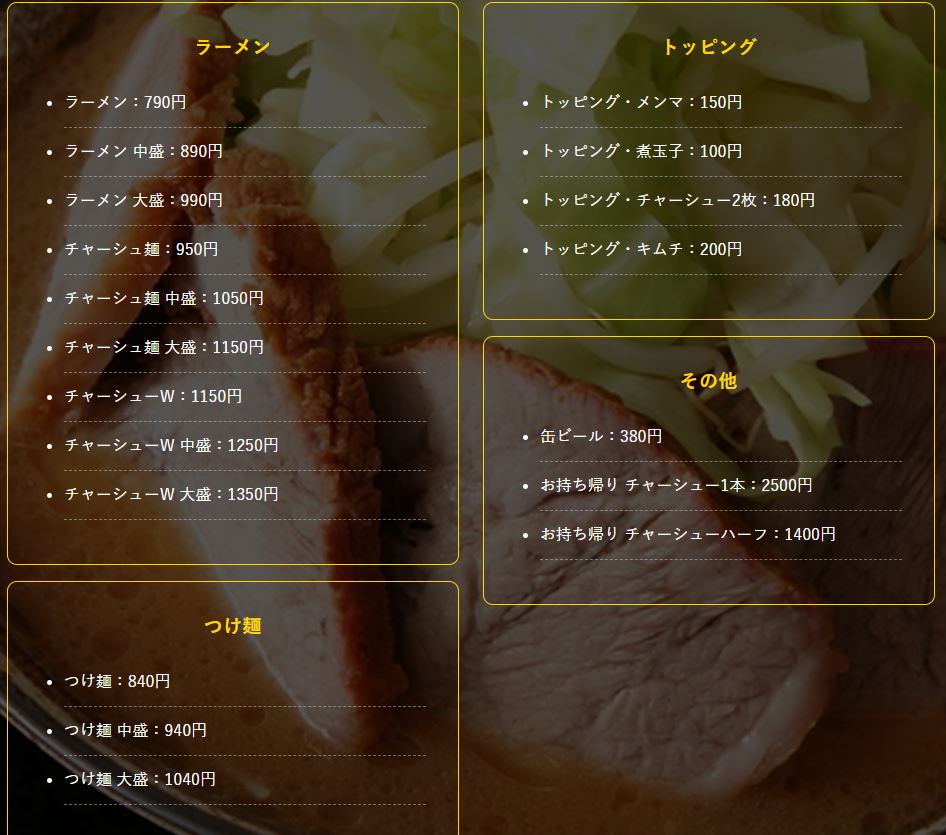 この際、「ニンニク入れますか?」と尋ねられるので、以下お好みがあれば、回答します。