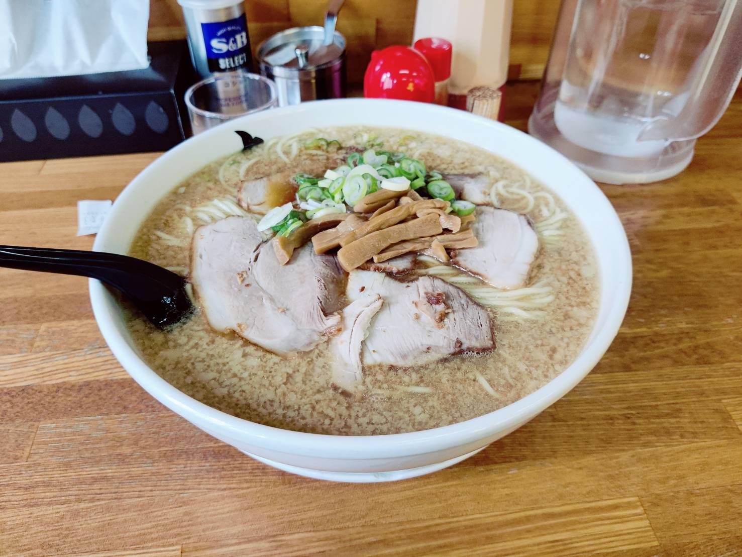 というのも、私は食券を渡す際、麺の硬さなどを変えられることを知らずにそのままノーマルで注文してしまったのですが、着席した後に味変出来ることを知って後悔しました・・・。皆さんは事前にどの注文をするか考えておいた方が良いです。