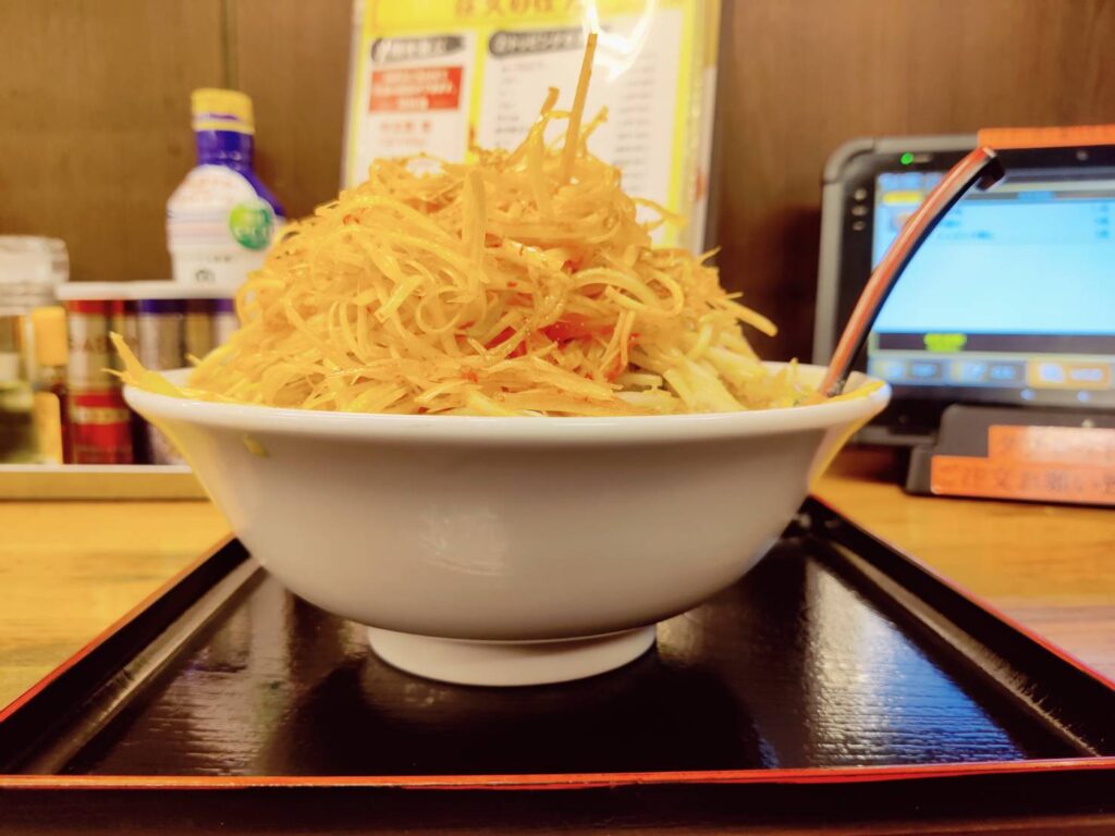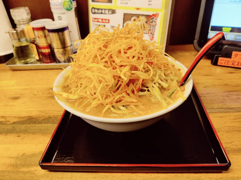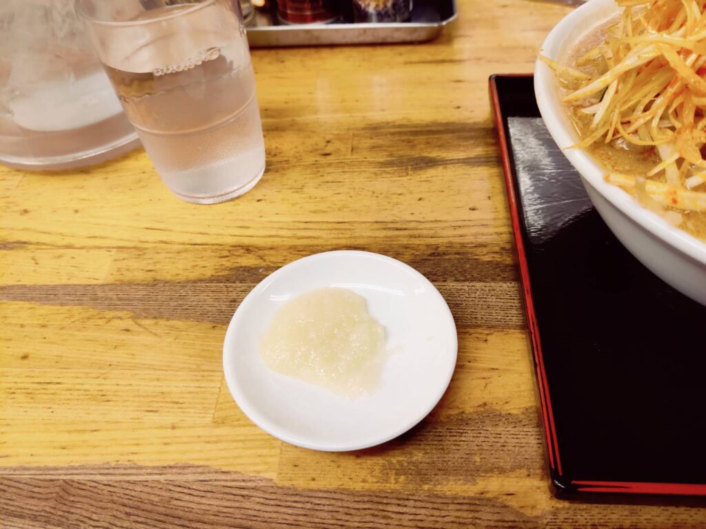 トッピングでおろしにんにく無料と書いてあったので、着丼時に「頂けますか?」と尋ねたところ・・・
