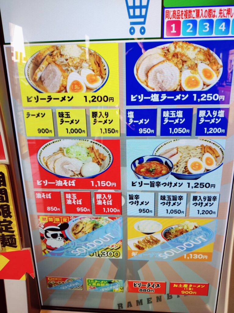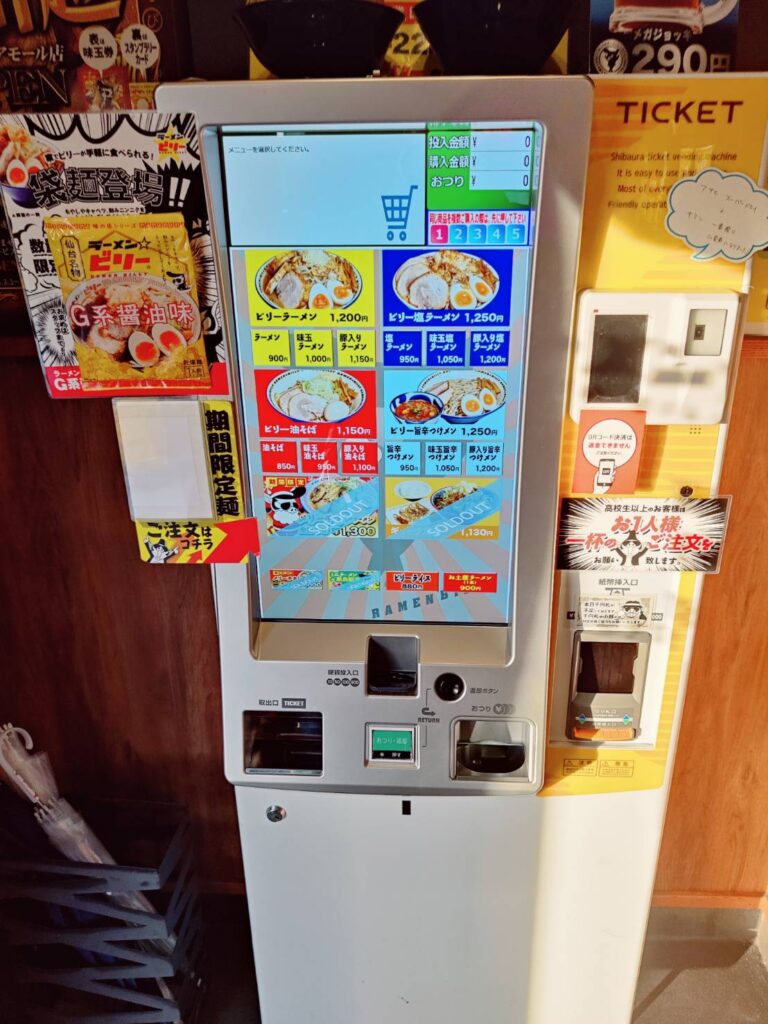券売機で油やニンニクの量などを選ぶことができます。