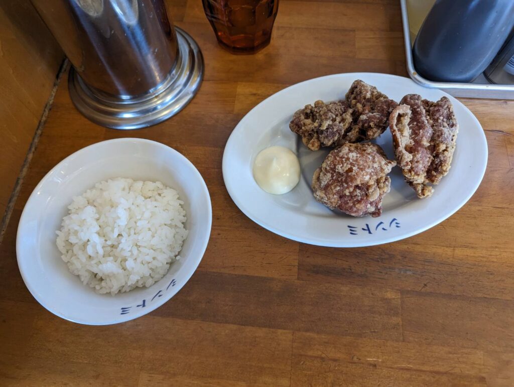 唐揚げセットにライスが付くことを知らなかったので「えっこの値段でこんなにあるの」と大量の炭水化物を接種する罪悪感とお買い得感を感じました!
