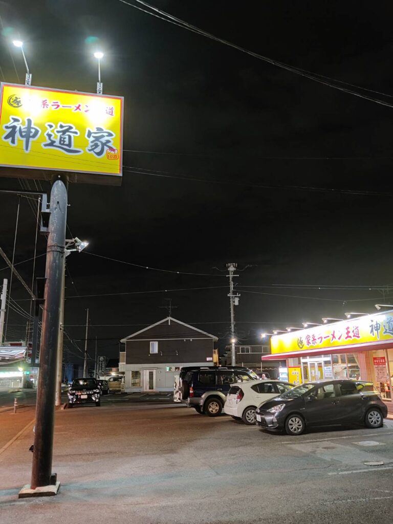 県道沿いに位置した家系ラーメン屋さんです!! すぐ目の前にドラッグストア、斜向かいにスーパー銭湯があります!! いつもスーパー銭湯に入った後、その足でこちらの神道家さんまで寄って、ラーメンを頂いています!! 神道家さんの駐車場は10台程度しか停められず、満車になっていることが多いです!