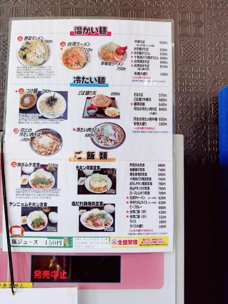 こちらがメニューです。この手のスーパー銭湯は食事が高い印象ですがここは安いですね。
